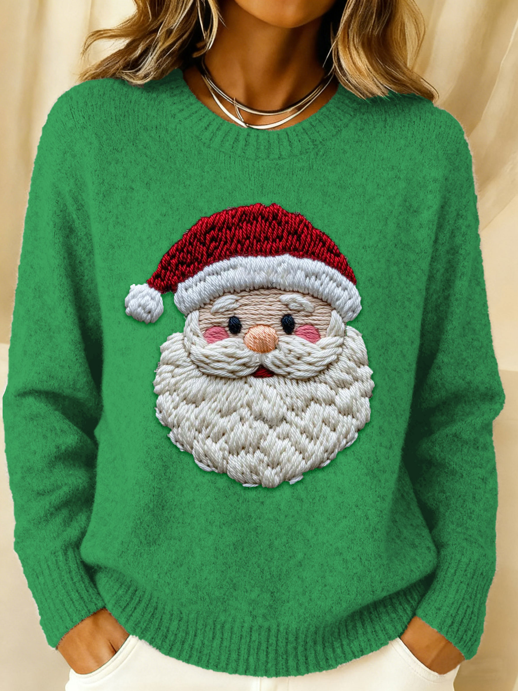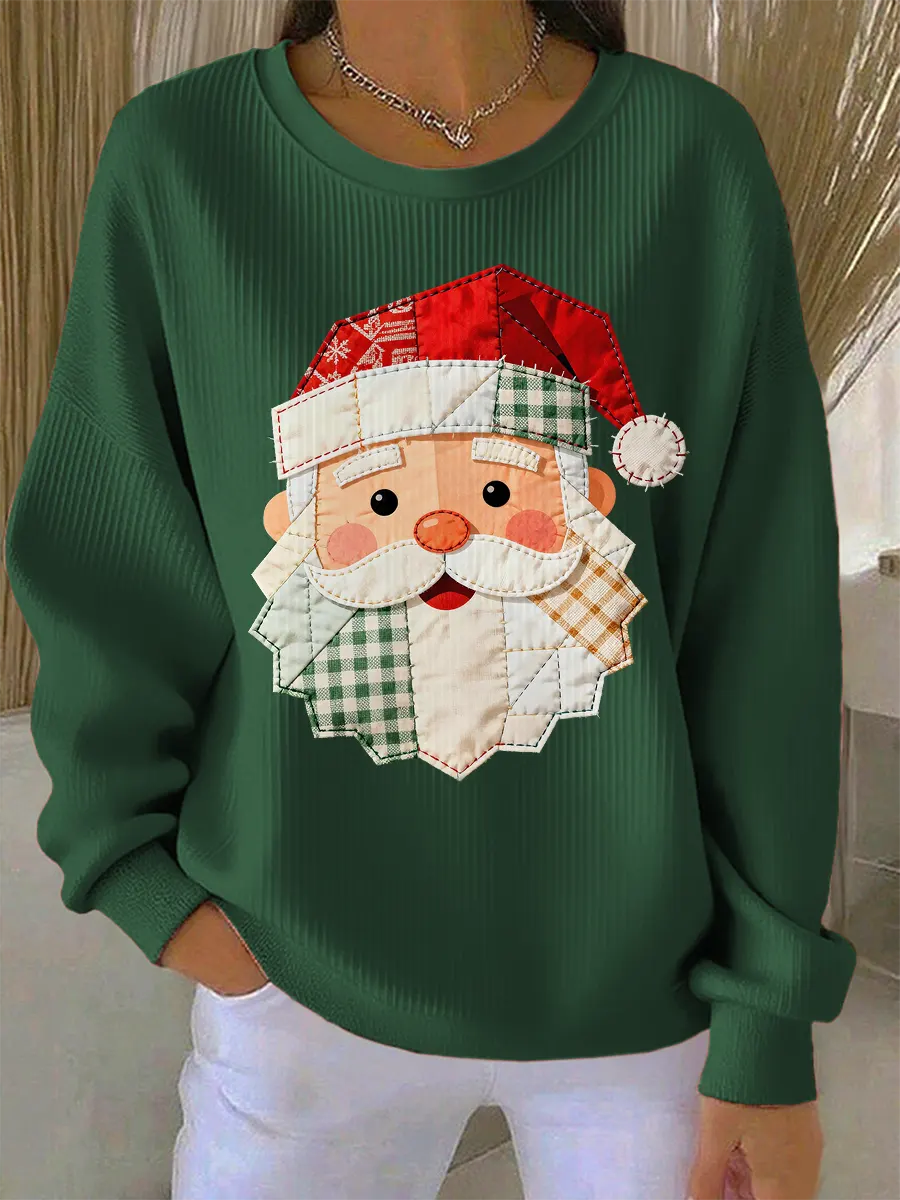 Christmas Santa Art Print Long Sleeve Sweater