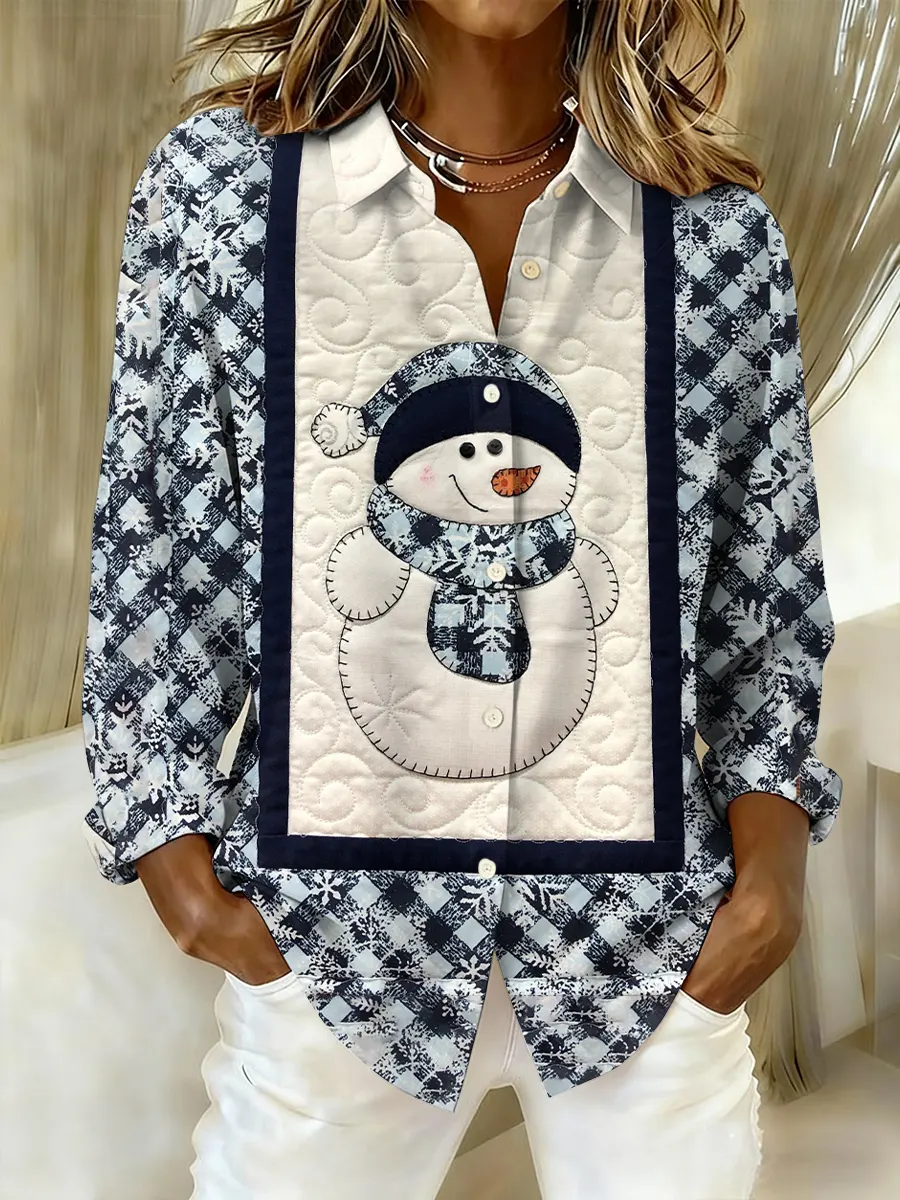 Christmas Snowman Art Cotton Long Sleeve Shirt