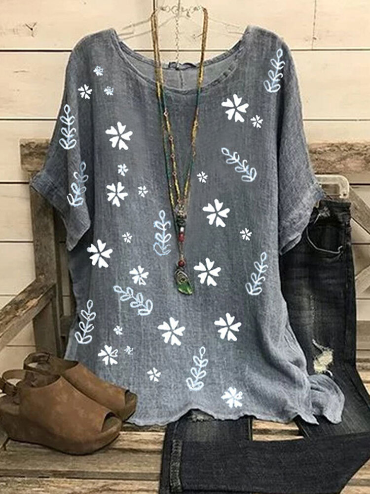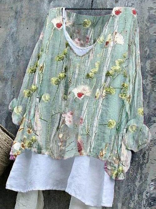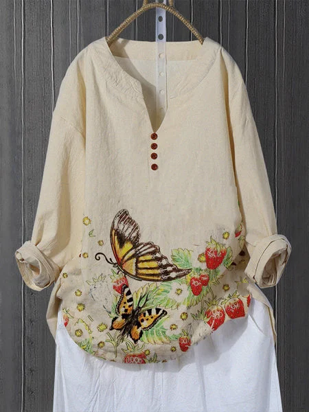 Long Sleeve Casual Linen Printed Shirts & Tops