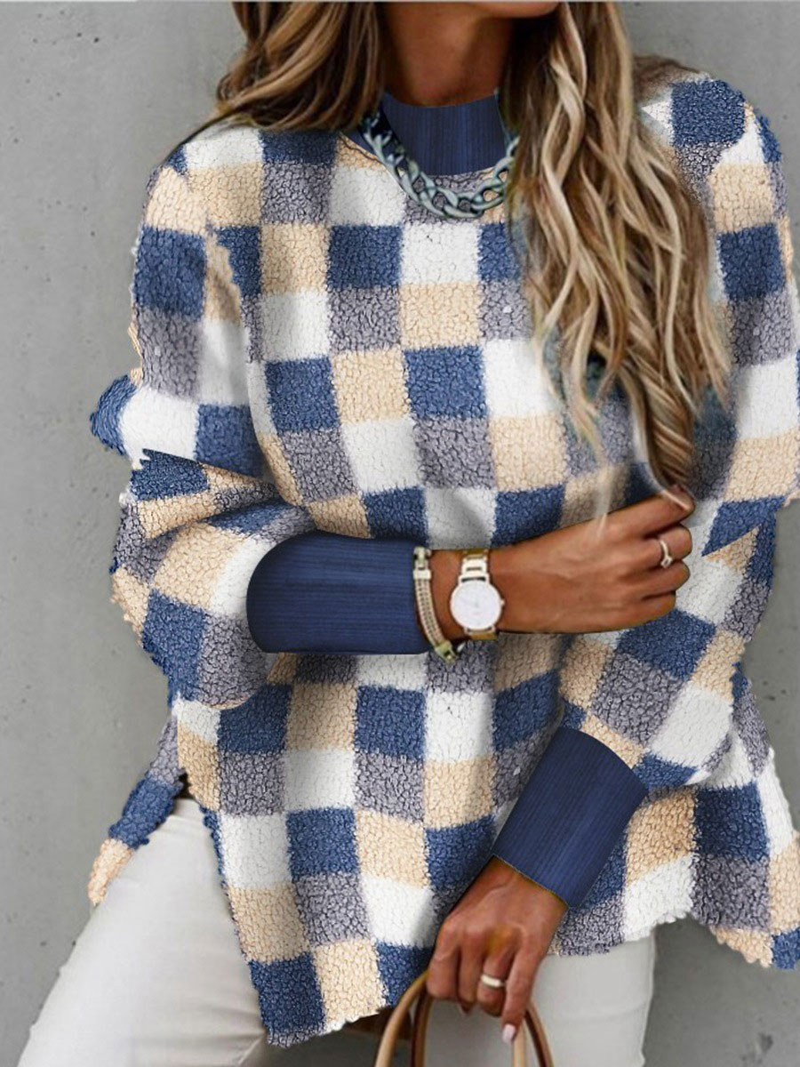 Round Neck Print Plus Velvet Loose Long-sleeved T-shirt