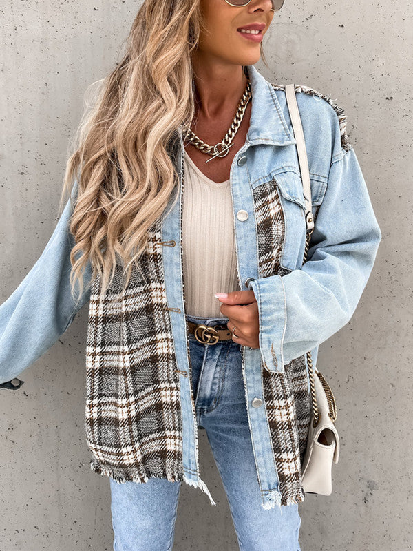 Printed Stitching Drawstring Plus Size Hooded Jacket