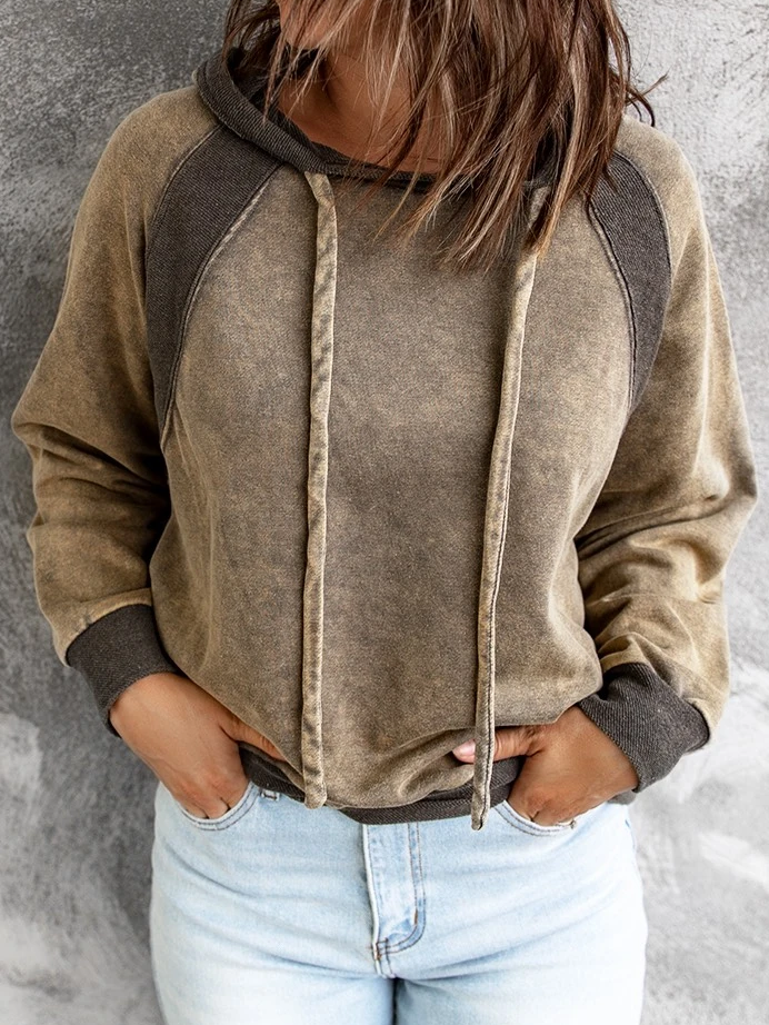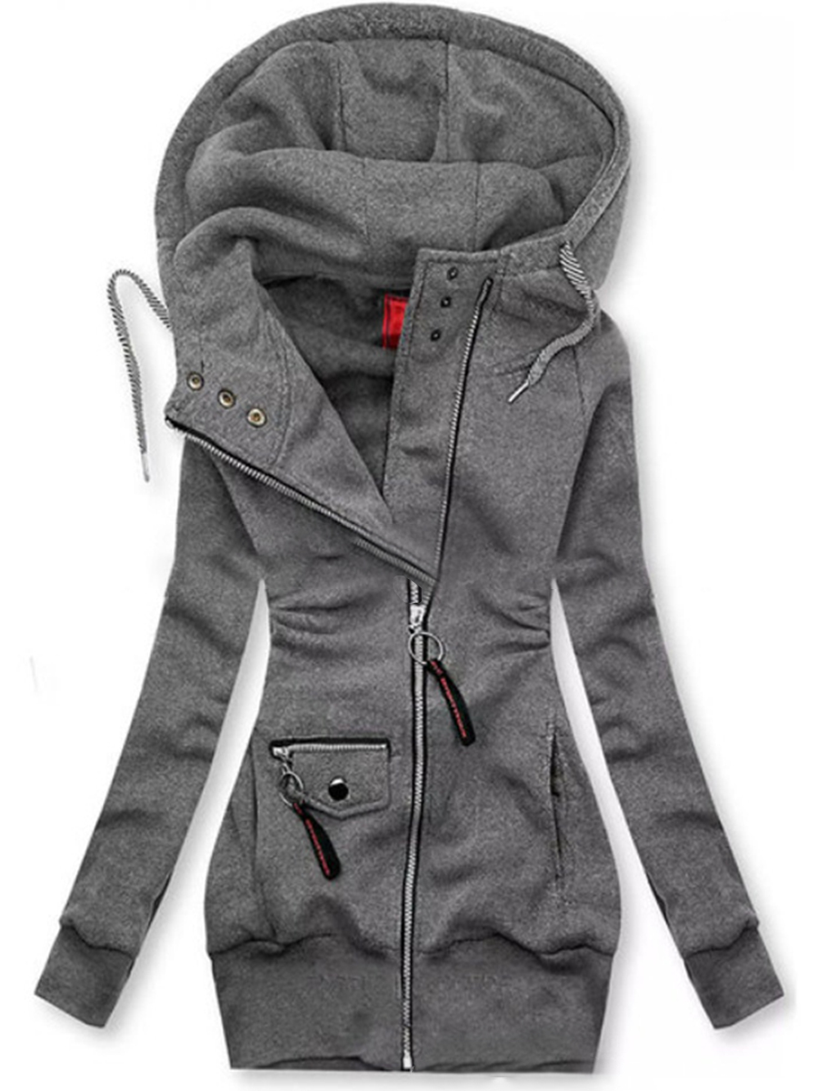 Loose Casual Solid Color Zip Long Sleeve Hooded Sweatshirt