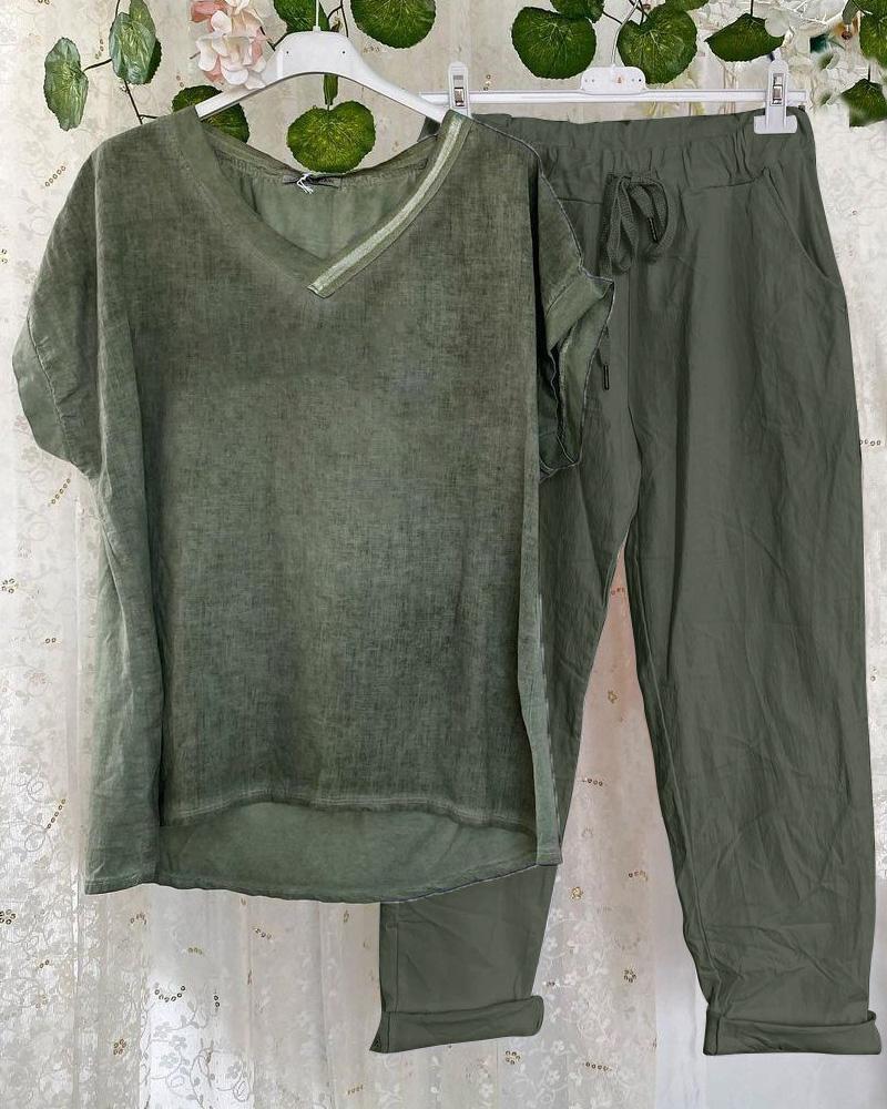 Casual Elastic Waist Cotton And Linen Wide Leg Trousers