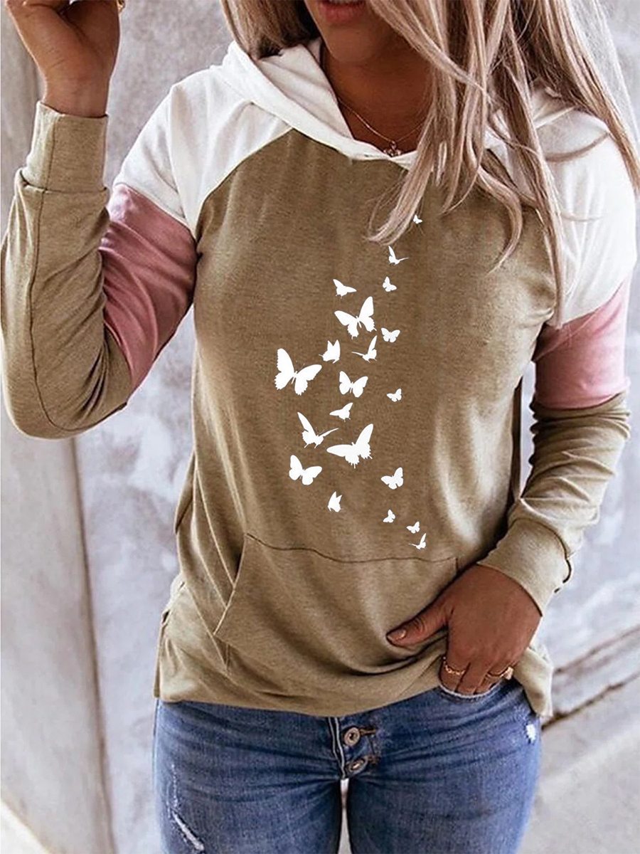 Casual Butterfly Print Long-Sleeved Hooded Sweatshirt
