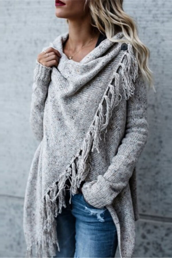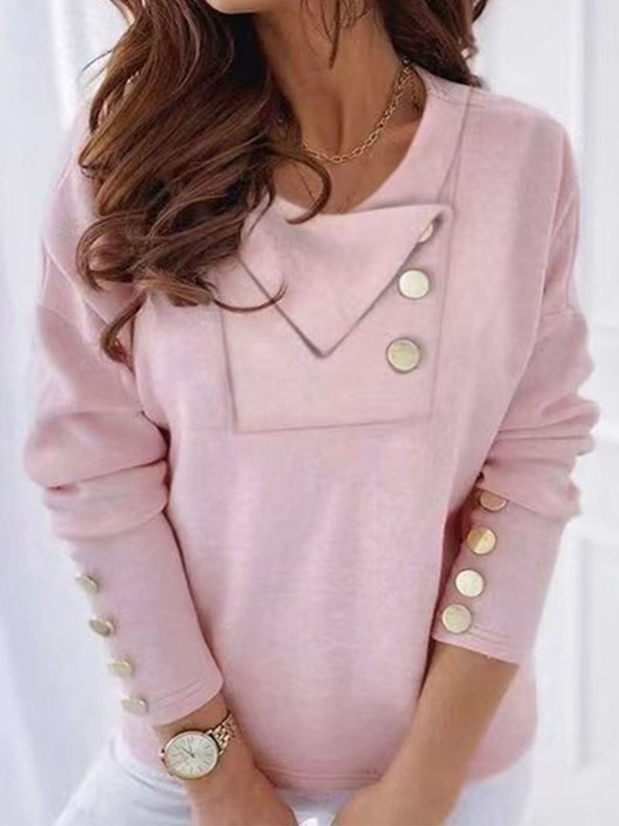 Autumn Winter Decorative Button Plain Long Sleeve Sweatershirt