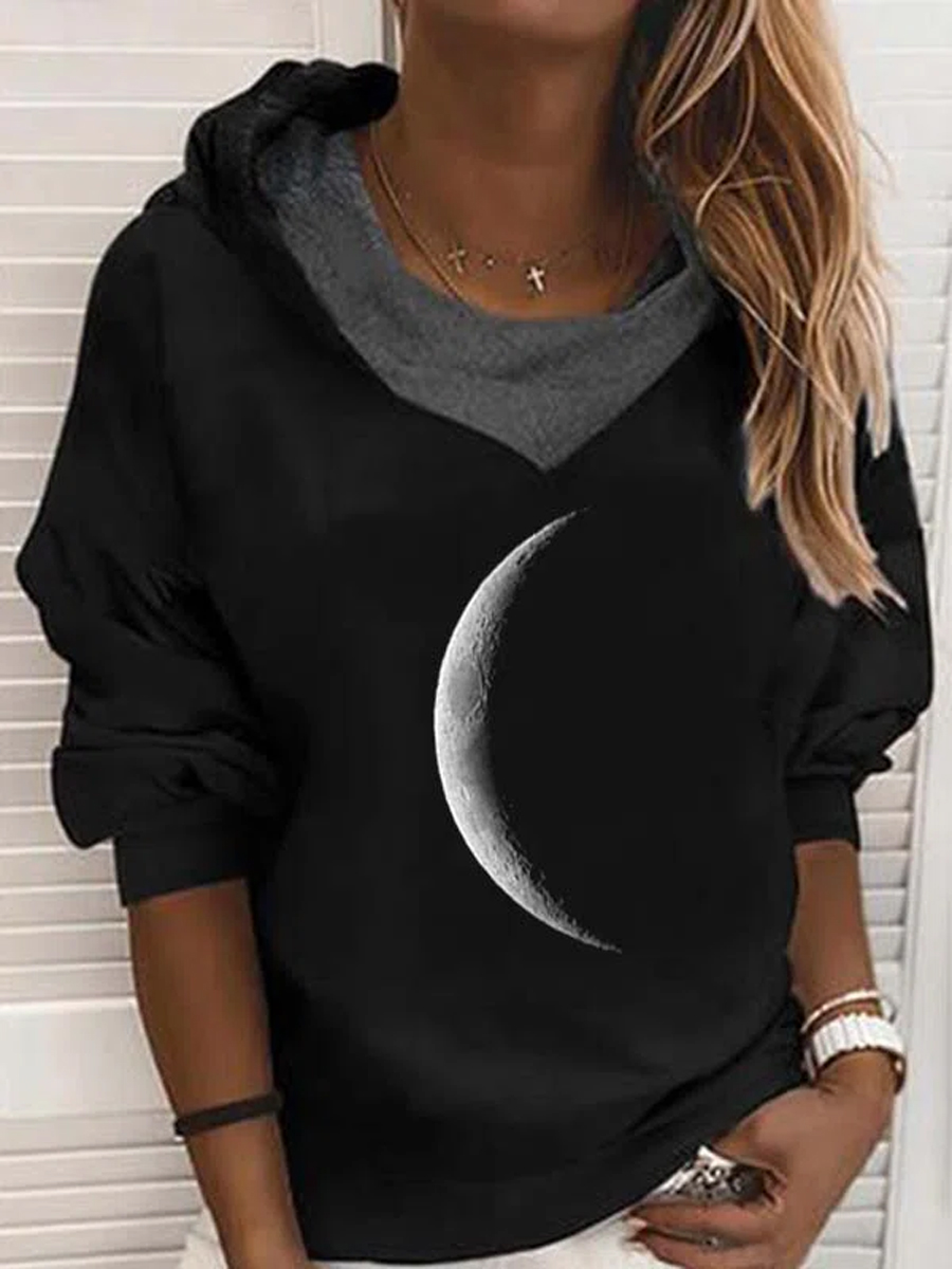 Casual Moon Print Long Sleeves Hoodie Sweatshirt