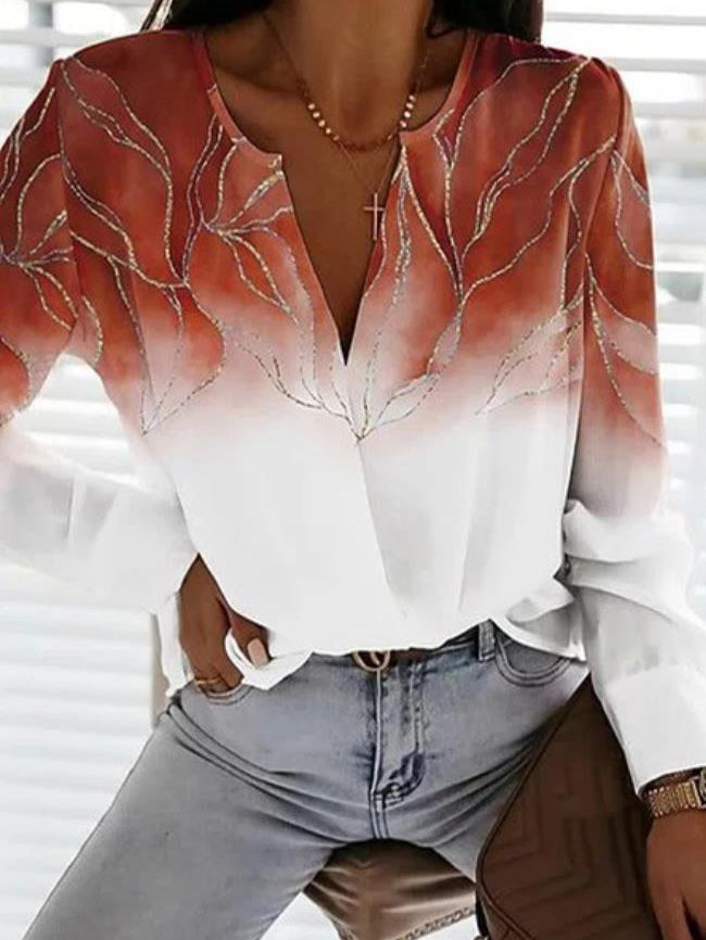 Women's T-Shirts Casual Printed V-Neck Long Sleeve T-Shirt