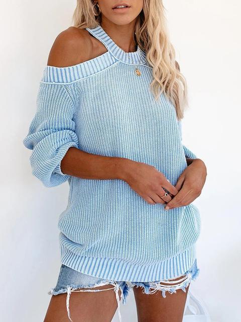 Solid Color Long Sleeve Knitted Hollow Sweater