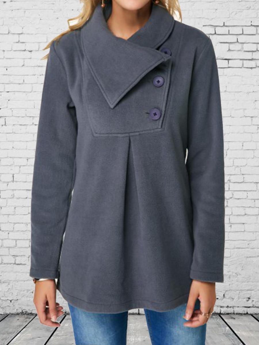 Women's Autumn And Winter Casual Solid Color Button Sweatershirt