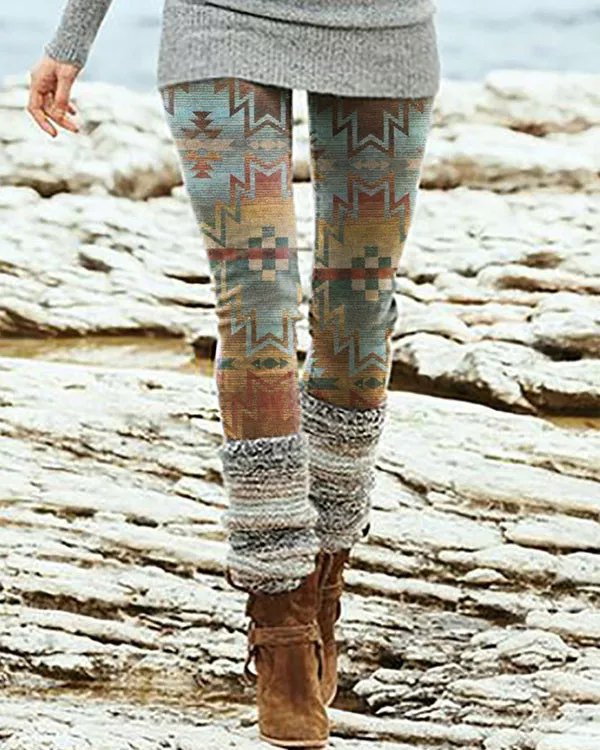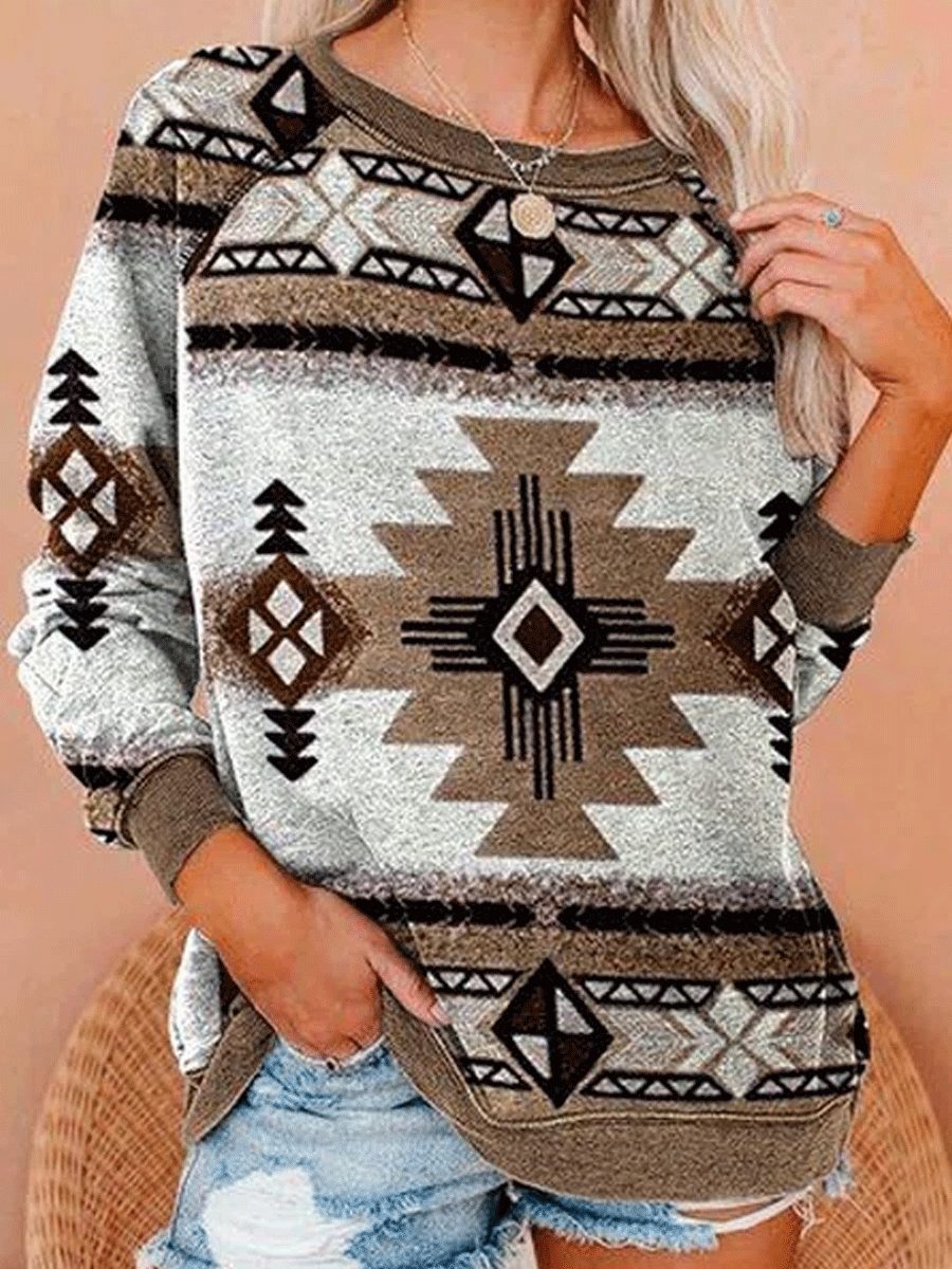 Ethnic Geometric Print Casual Crew Neck Sweatershirts