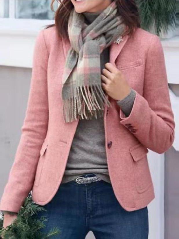 Solid Casual Cotton-Blend Shirt Collar Blouse