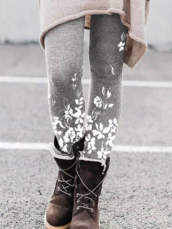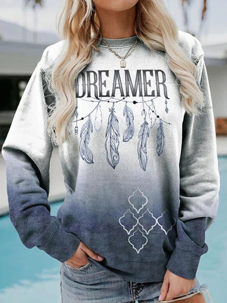 Casual Crew Neck Long Sleeve Floral Print Gradient Sweatshirt