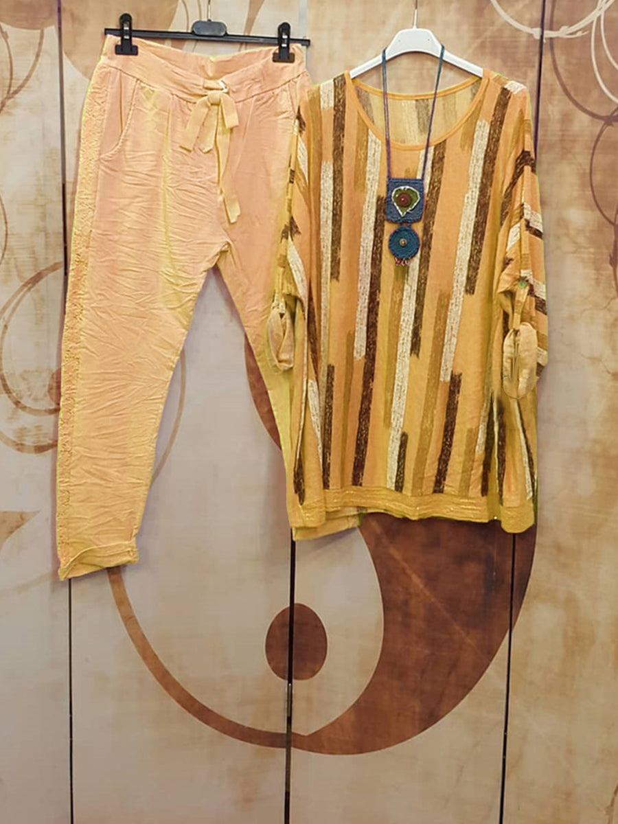 Colorblock Stripe Top And Pants Two-piece Set