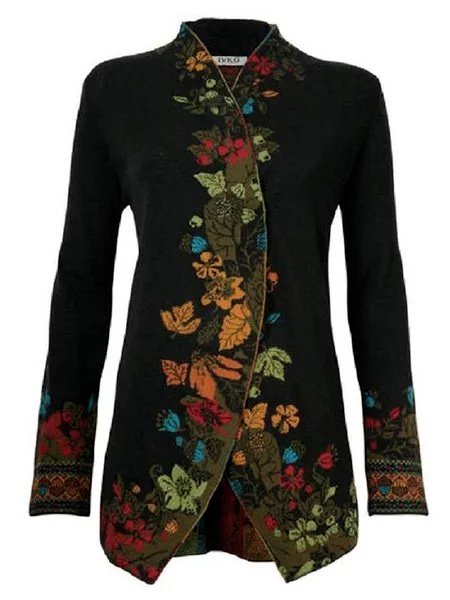 Collarless Vintage Cotton Blends Cardigan