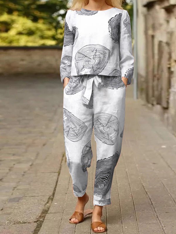 Women's Sets Crew Neck Print Top & Pants Two-Piece Set