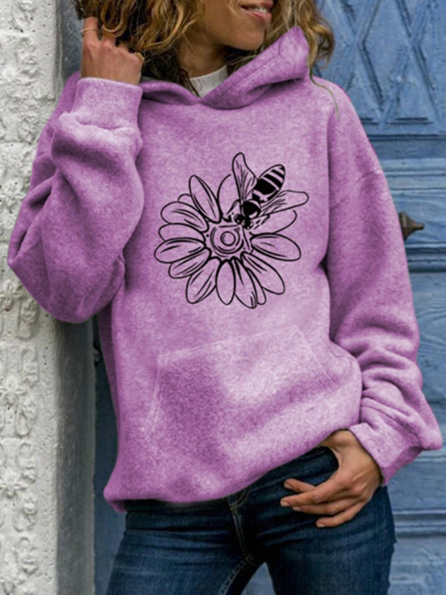 Casual Solid Color Printed Hooded Sweatshirt