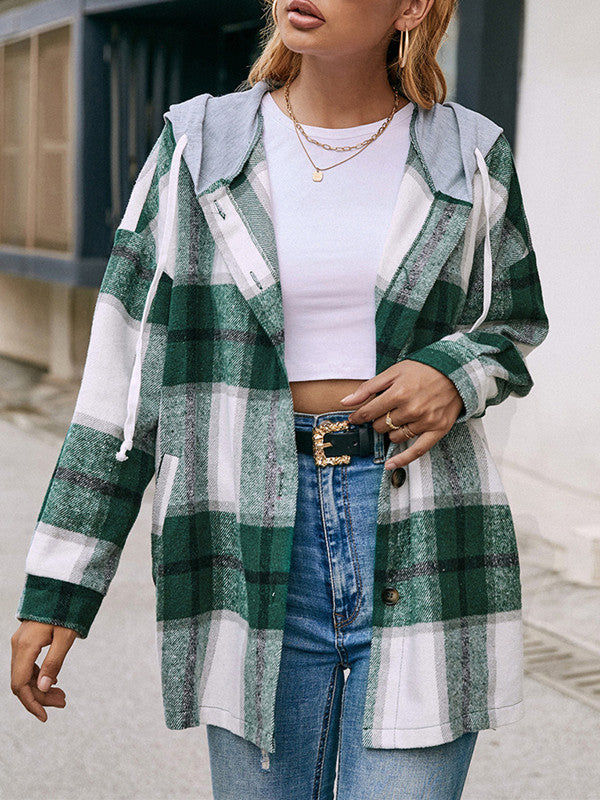 Plaid Print Loose Hooded Coat