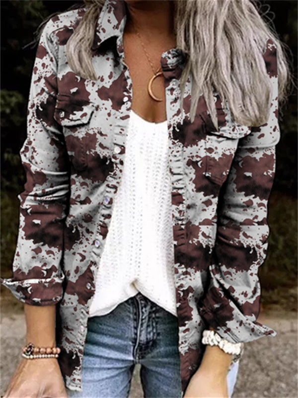 Camouflage Print Pockets Denim Jacket