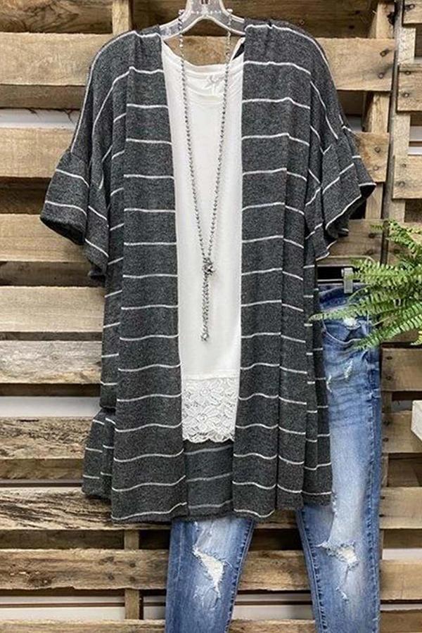 Striped Print Ruffled Cardigan