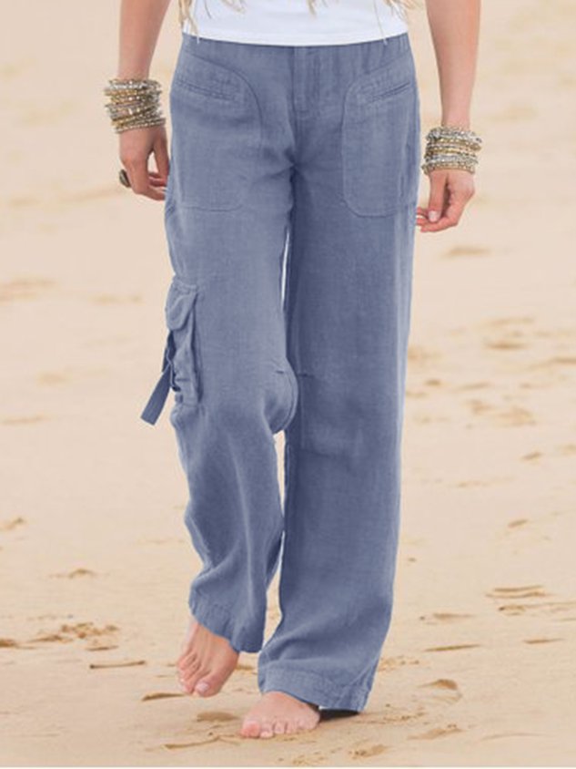 Women Cotton Linen Casual Pockets Pants