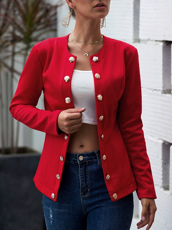 Neckless Long Sleeve Slim Fit Double Breasted Coat