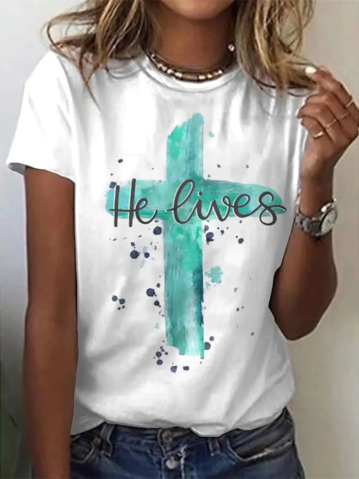 Women's T-Shirts Cross Print Crew Neck Short Sleeve T-Shirt