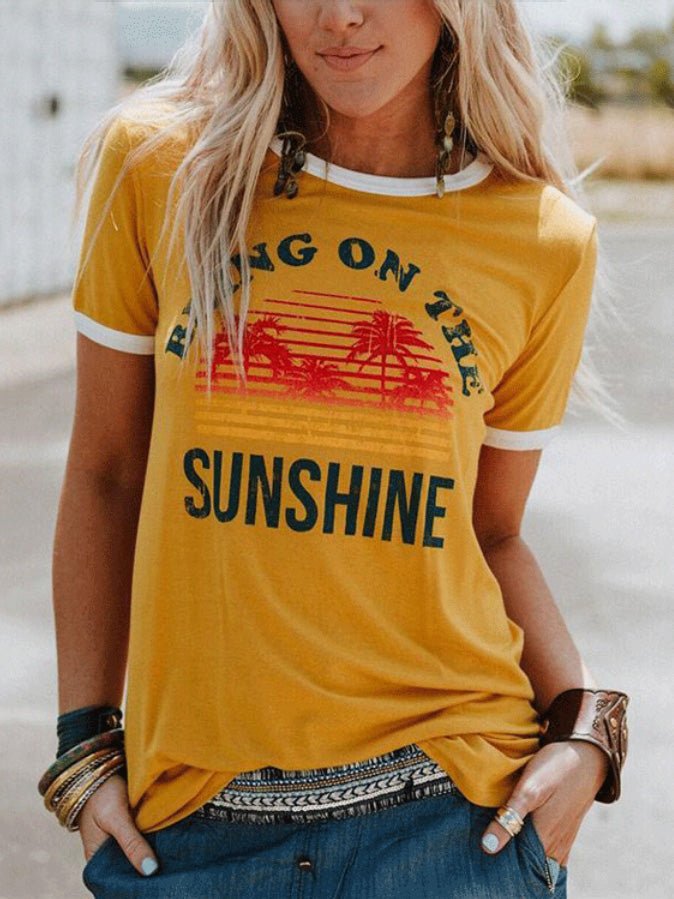 Women's T-Shirts Letter Print Crew Neck Short Sleeve T-Shirt