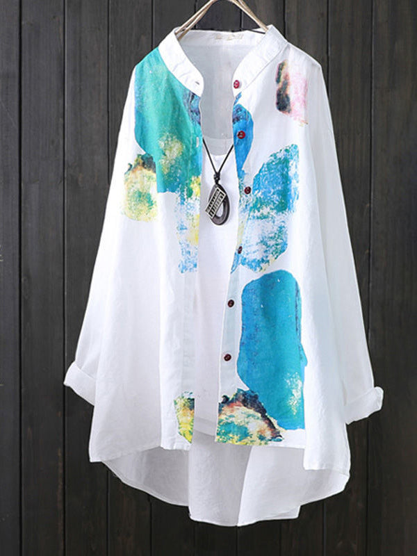 Casual Asymmetric Mid-length Cotton And Linen Shirt