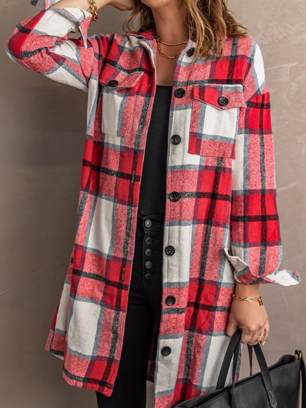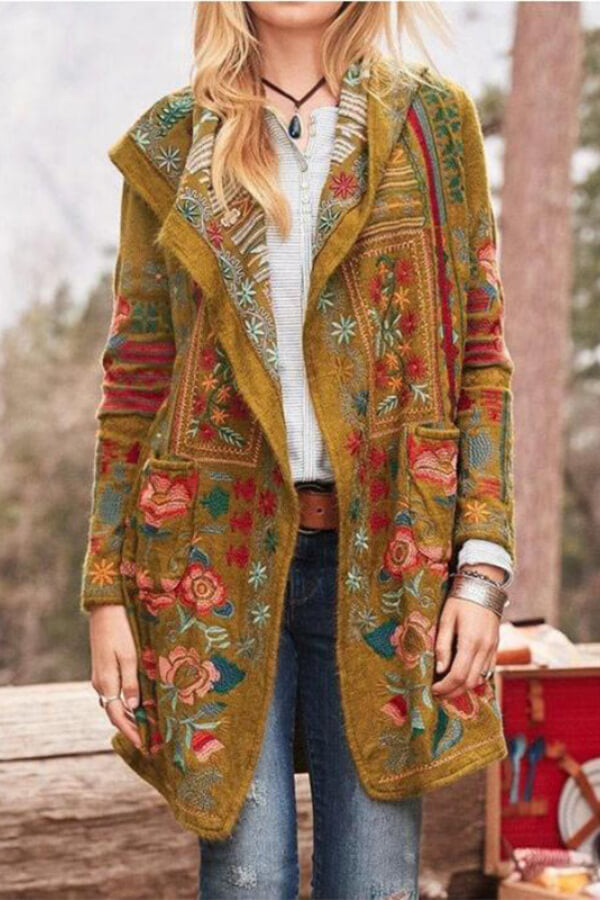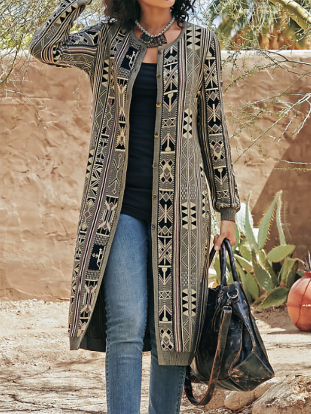 Geometric Vintage Autumn Polyester Micro-Elasticity Loose Best Sell Long sleeve H-Line Overcoat for Women