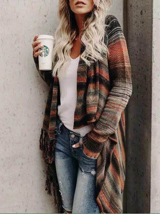 Mayoulove Chic printed loose asymmetrical cardigan coat