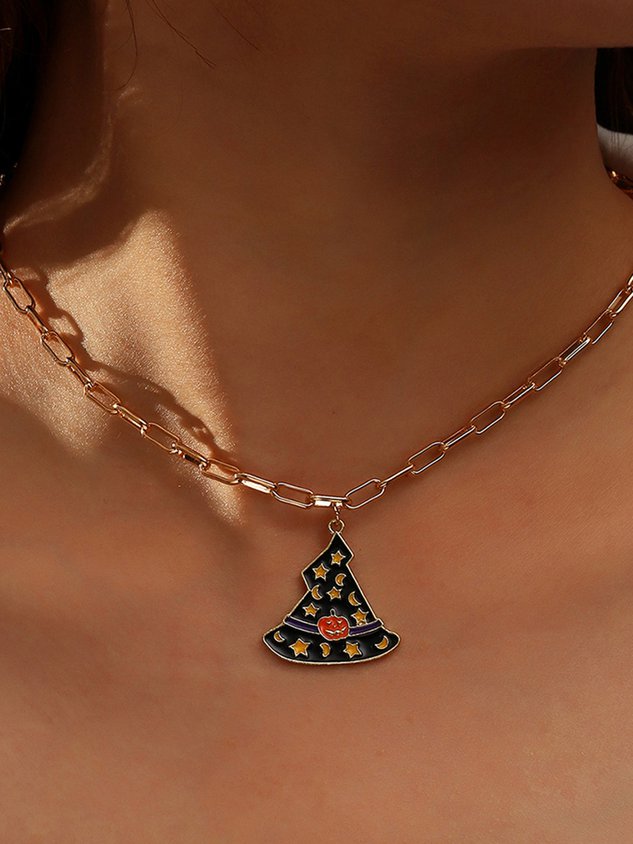 Women Vintage All Season Halloween Printing Commuting Metal Crystal Halloween Pendant Necklaces Necklace