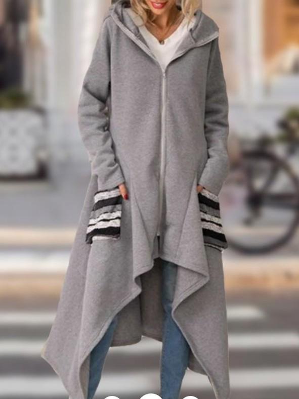 Mayoulove Long irregular hem zipper pocket outerwear