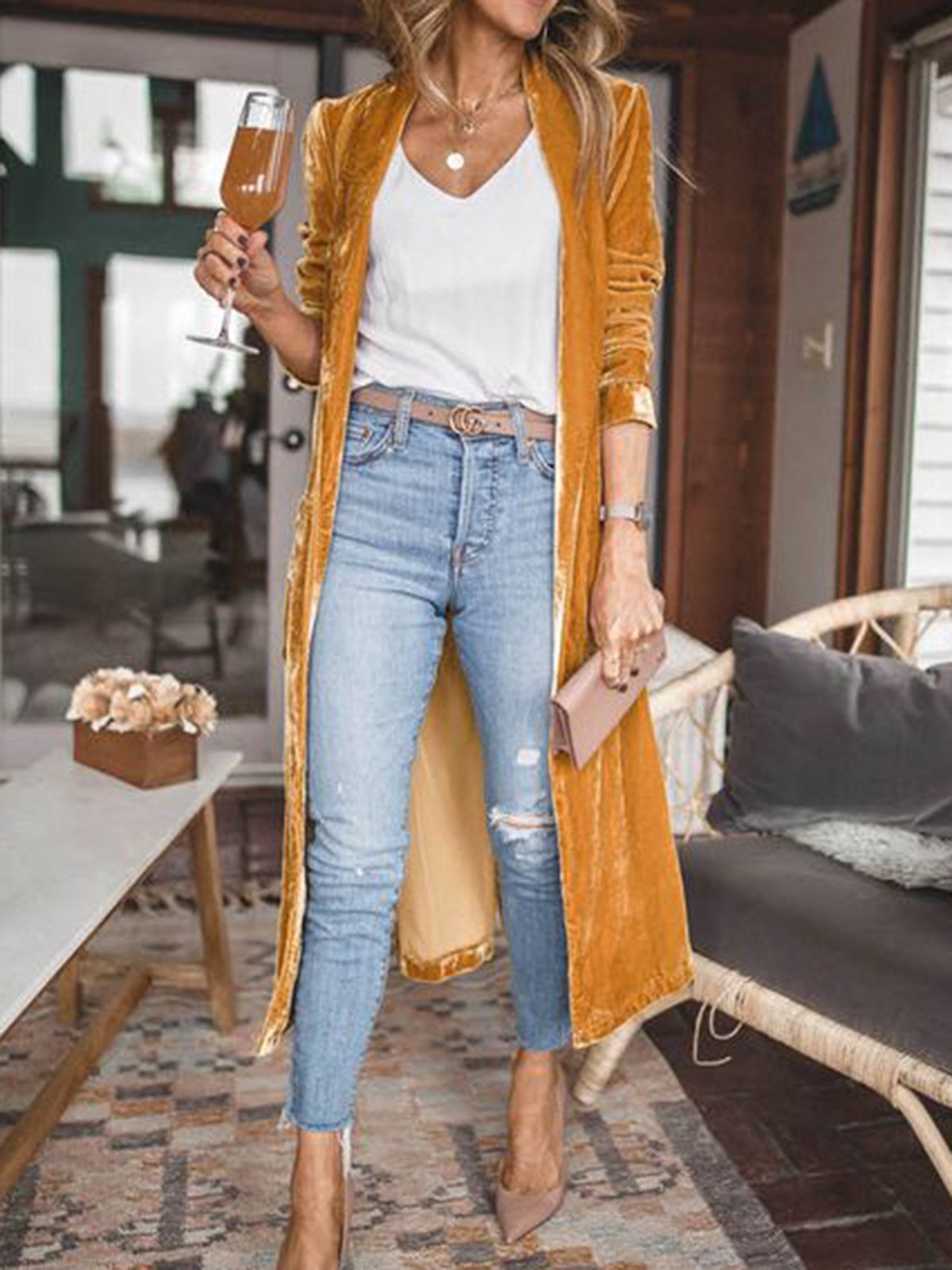 Premium velvet long sleeve cardigan jacket