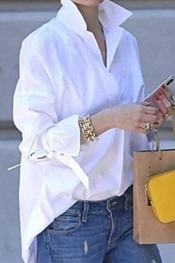 Cold Shoulder Button Low Cut Long sleeve Blouse