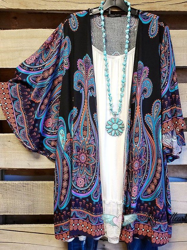 Plus Size Abstract Casual Long Sleeve Cardigan