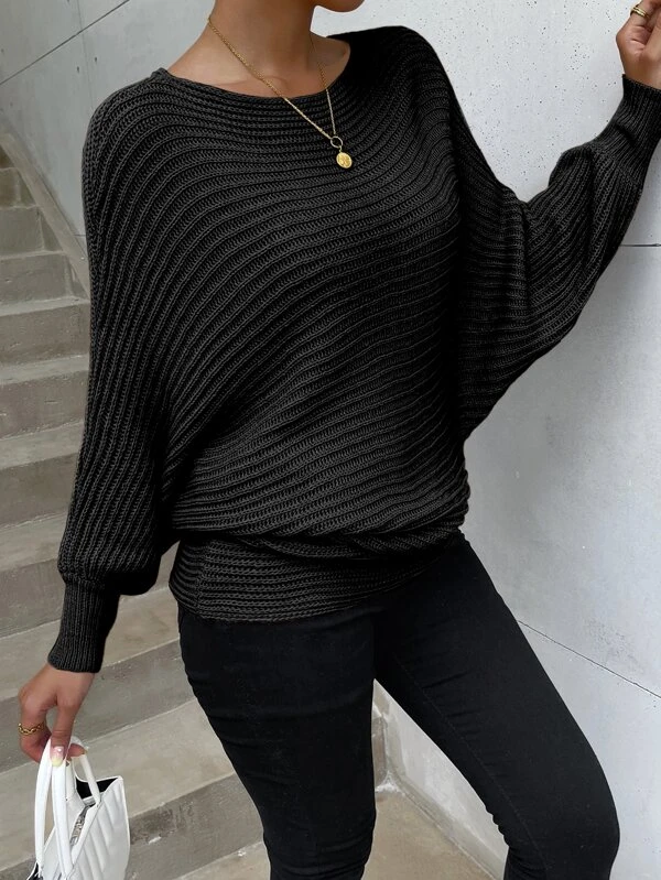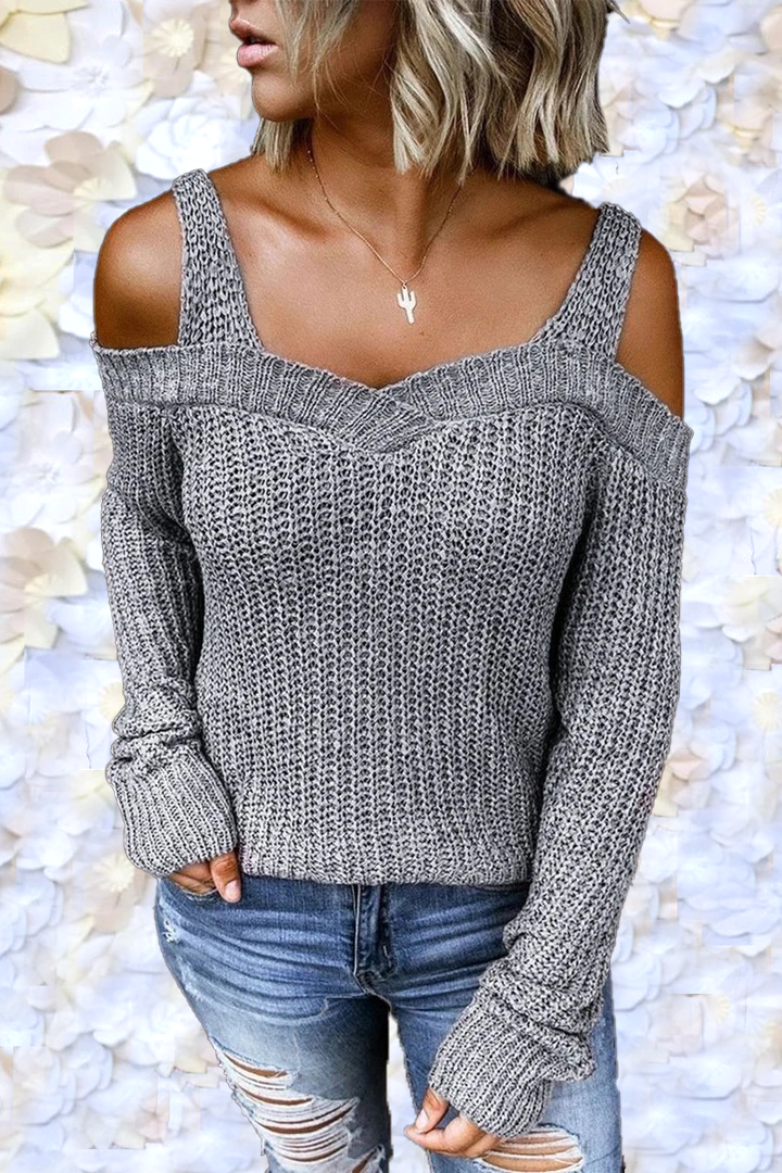 Casual Sling Strapless Solid Color Long Sleeve Sweater