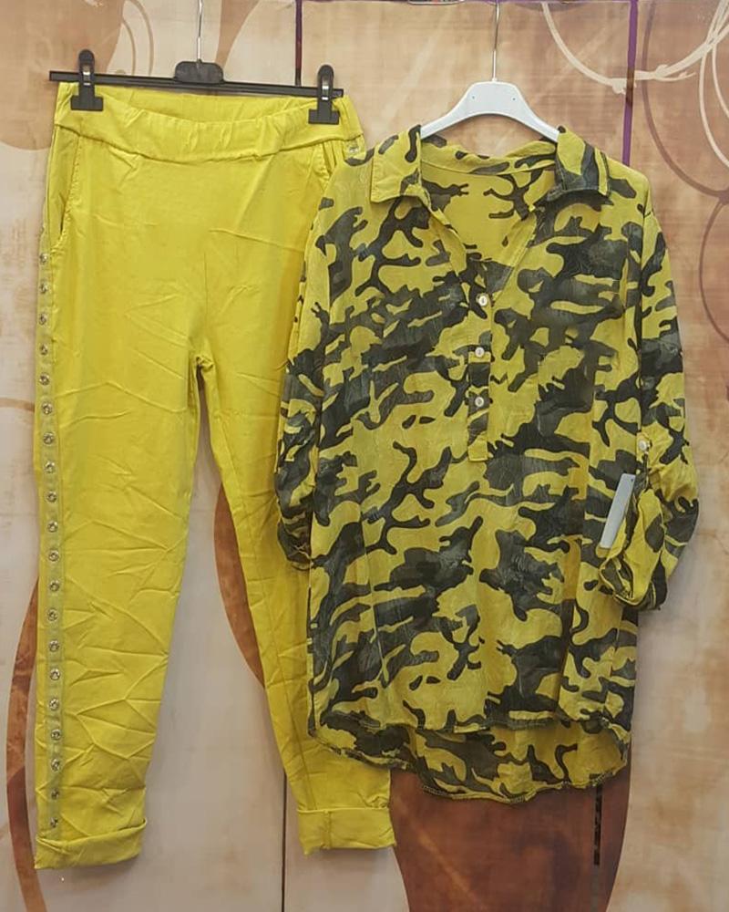 V-Neck Camouflage Print Long Sleeve Two-Piece Suit
