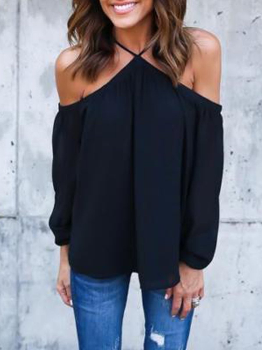 Solid Color Round Neck Strapless Long Sleeve T-Shirt