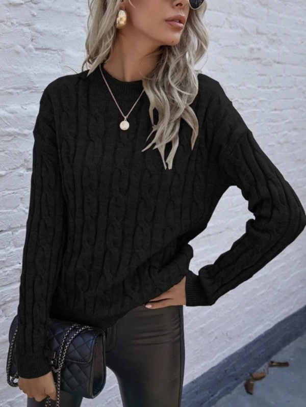 Cable Knit Turtleneck Drop Shoulder Sweater