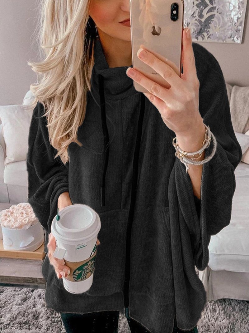 Turtleneck Batwing Sleeve Pocket Patched Sweater