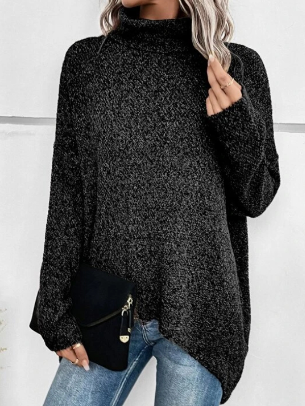 Turtleneck Batwing Sleeve Asymmetrical Hem Sweater