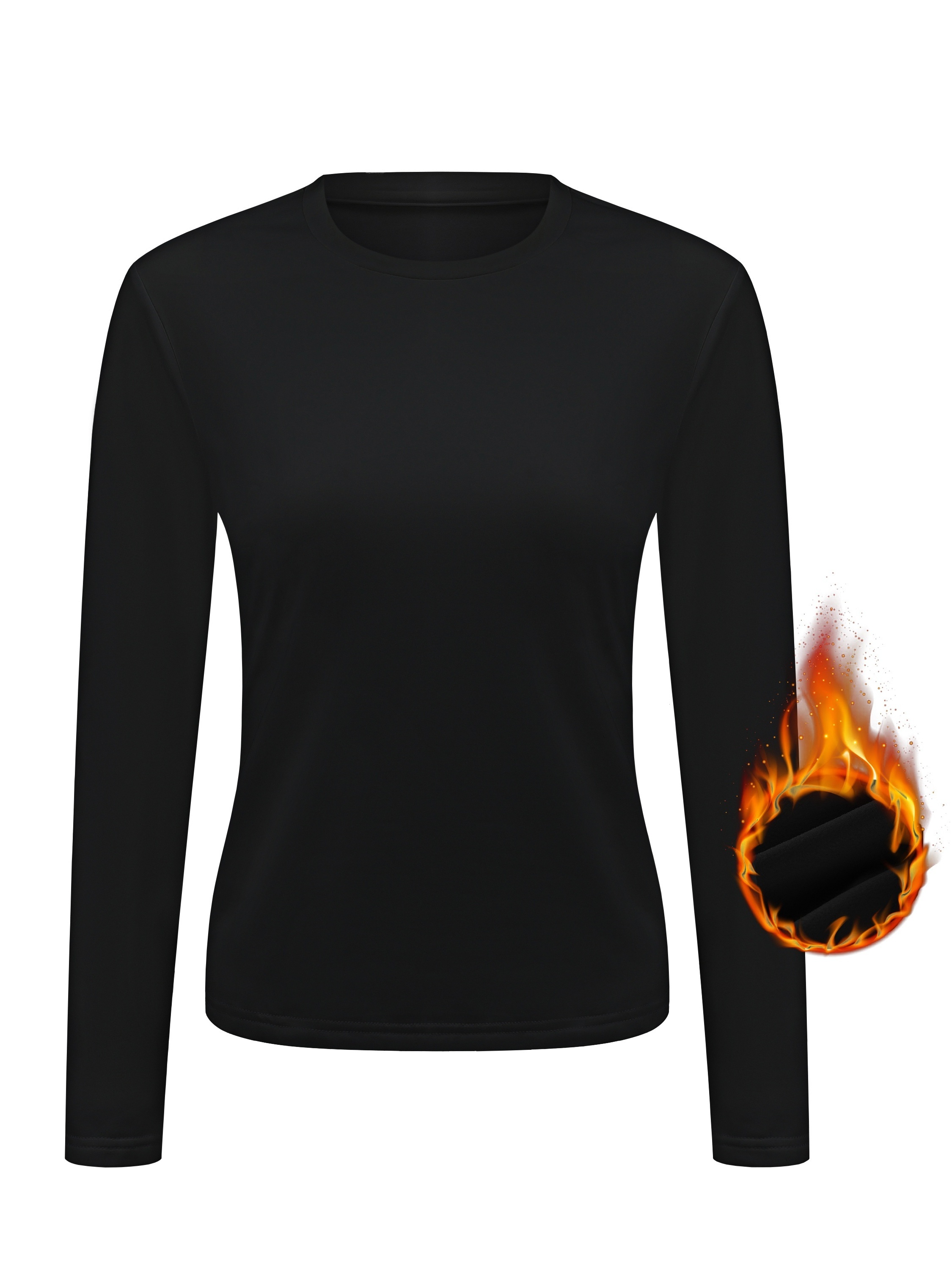 Women's Thermal Tops, Solid Long Sleeve Crew Neck Shirts, Women's Warm Underwear For Winter, Women's Clothing