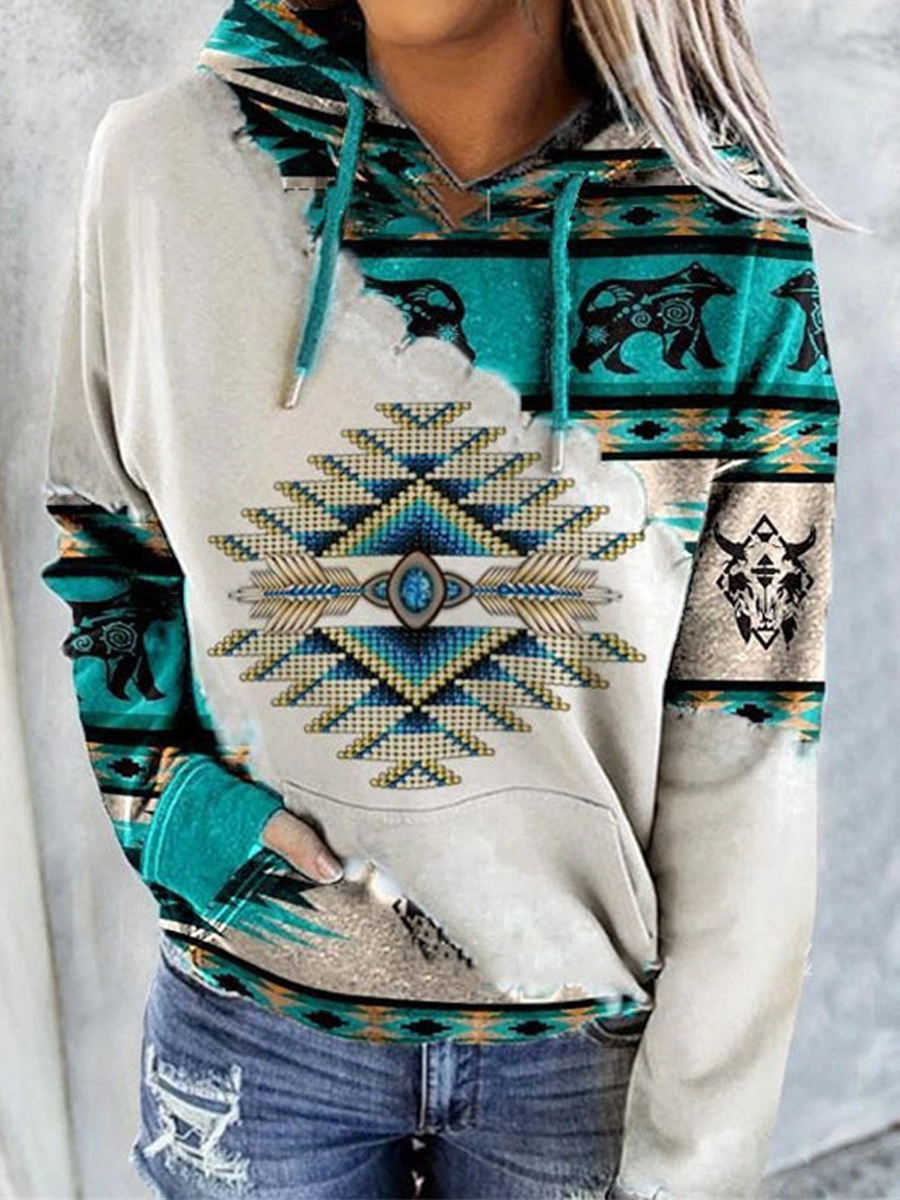 Loose Casual Vintage Print Hoodie