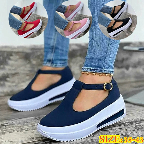 Women Summer Retro Buckle Round Head Wedge Platform Slip-On Sandals So