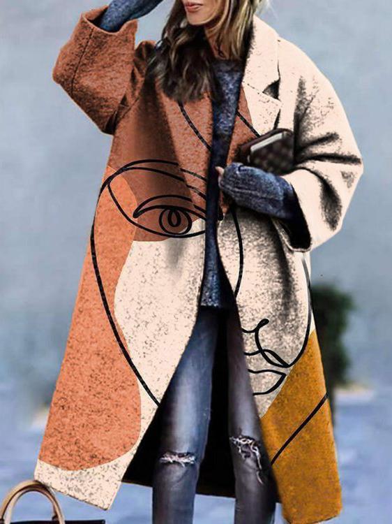 Mayoulove Women winter printed woolen coat