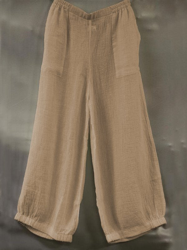 Casual Plus Size Solid Pants With Pockets