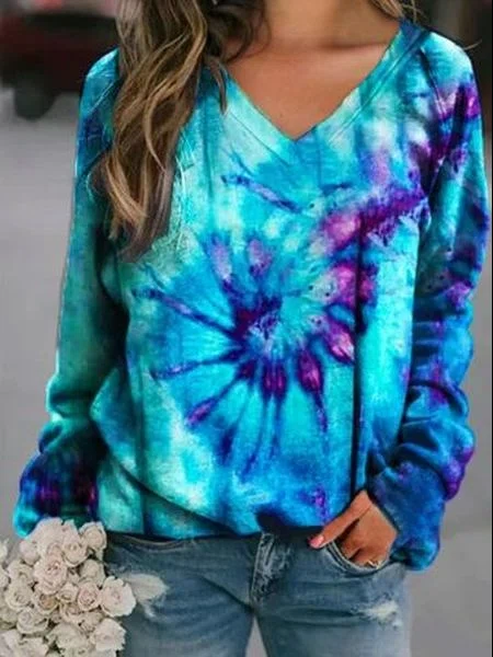 Ombre V Neck Cotton-Blend Sweatshirts