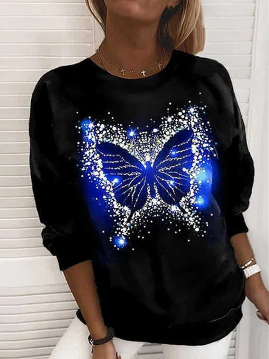 Fall/Winter Butterfly Print Round Neck Loose Long Sleeve Sweatshirt