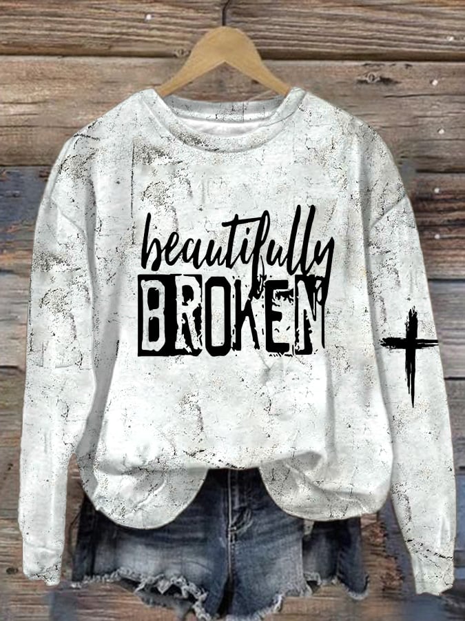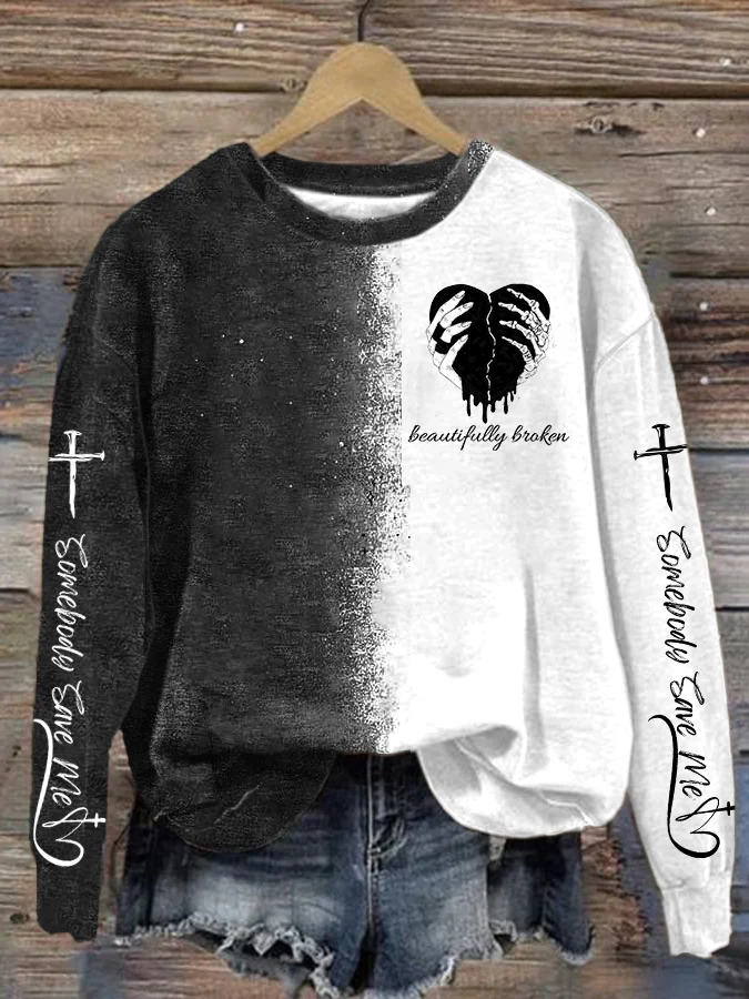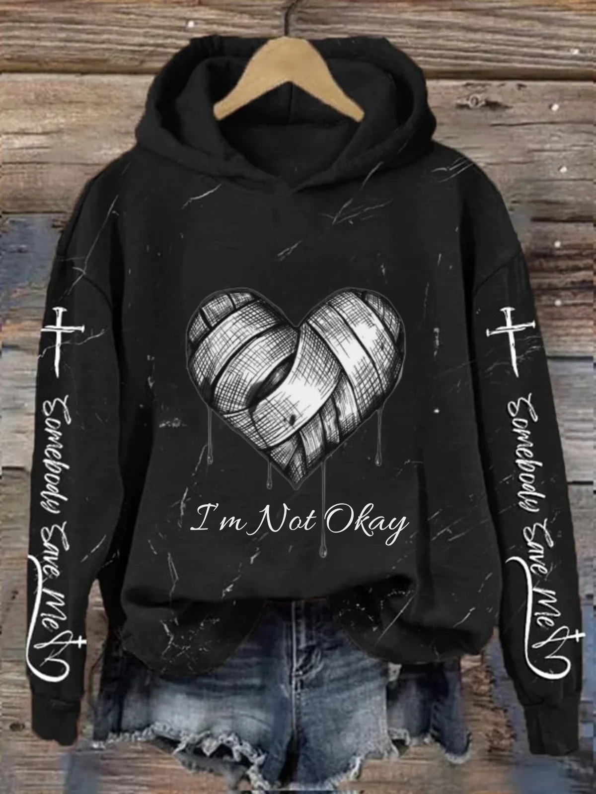 Women's I'M NOT OKAY Broken Heart printed casual sweatshirt