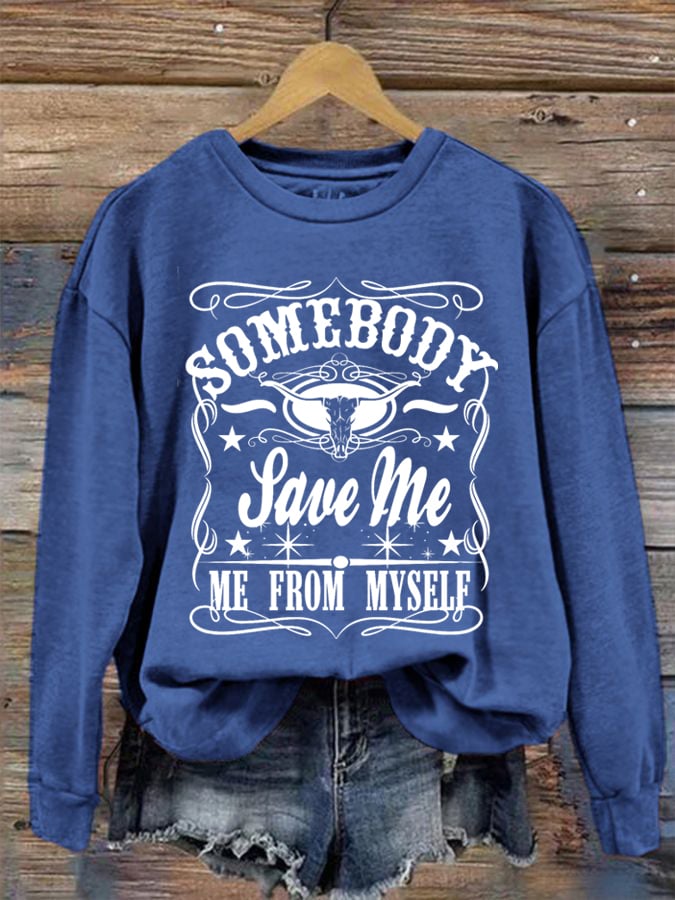 Women's Somebody Save Me From Myself Print Crew Neck Sweatshirt